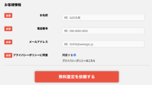 「お客様情報」には、査定結果をお伝えするための連絡手段として必要です。